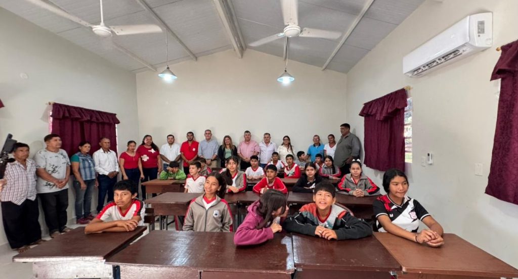 La agenda incluyó la inauguración de una moderna aula en la Escuela Básica N.º 7539 ”Hechapyra”, obra que representa una inversión concreta en el fortalecimiento del sistema educativo y que brindará mejores condiciones para el proceso de enseñanza-aprendizaje.