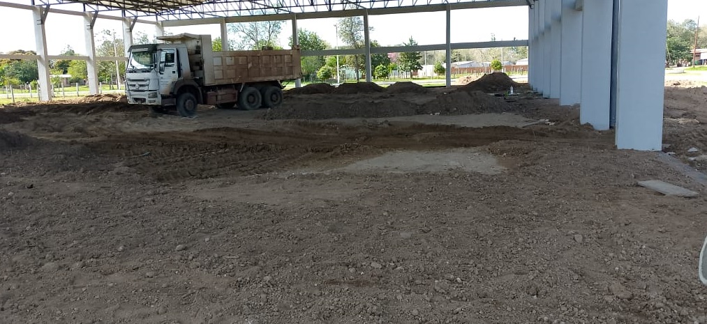 En el distrito de San Carlos del Apa se realizan trabajos de carga de ripio en el predio del tinglado multiuso, una obra que será inaugurada próximamente por la Gobernación Departamental de Concepción, en conjunto con la Municipalidad local.